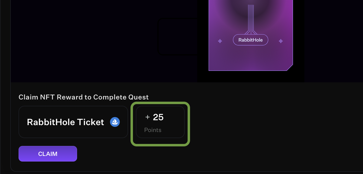 Reward-Based Points: These points are derived from the reward value of a quest. The higher the quest reward is, the higher the point total. Below is a table which lays out Marginal Point Bracket for how points are calculated for a given quest (functions like a marginal tax bracket). NFT reward quests are assigned a reward value of 100k Gwei for determining quest points.